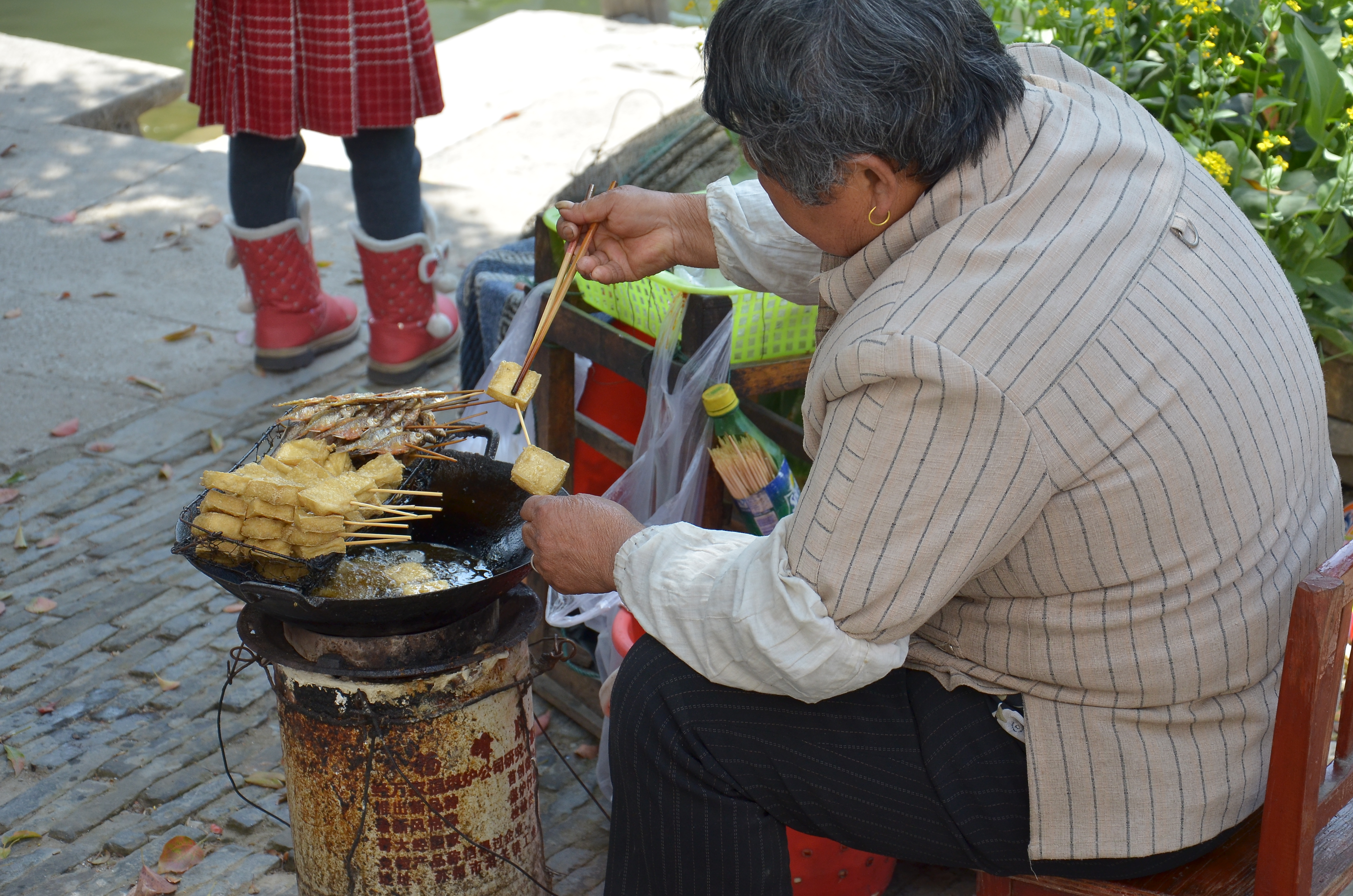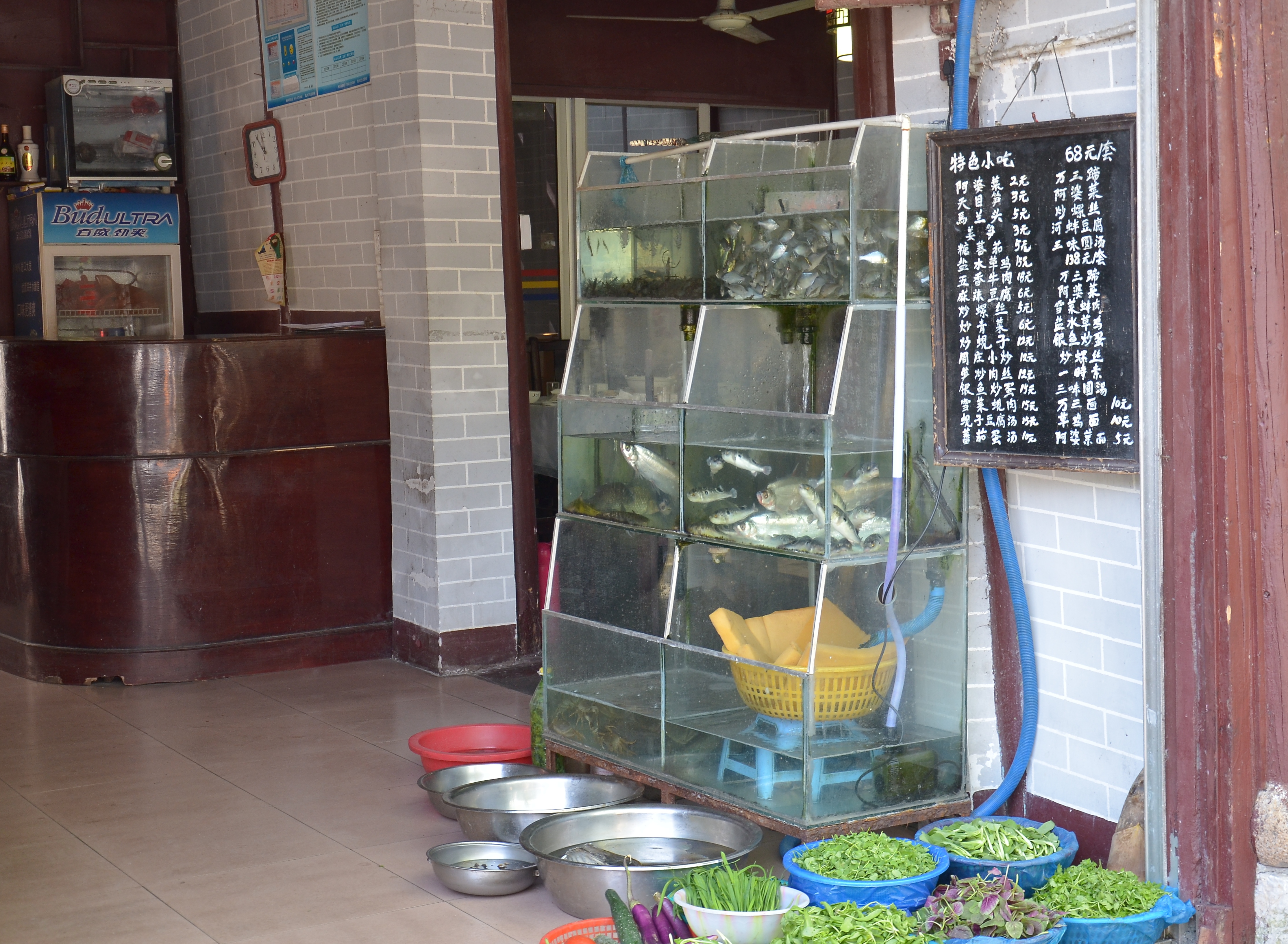 Gondoliere, aber nicht in Venedig. Schön gesungen haben sie beim Gondeln.BootsanlegestelleWir waren auch nicht alleine da, wo ist Silvia?Delikatesse: Schweinshaxen und Schweinsfüße zum mitnehmenMhm, lecker!Fisch und Kräuter vor dem Restaurant zum AussuchenRiesenmuscheln gabs auch, Durchmesser ca. 20 cm.Hier wird noch mit der Hand gespült .Es geht auch ganz einfach und preiswert.Leckerer Nachtisch aus Reismehl