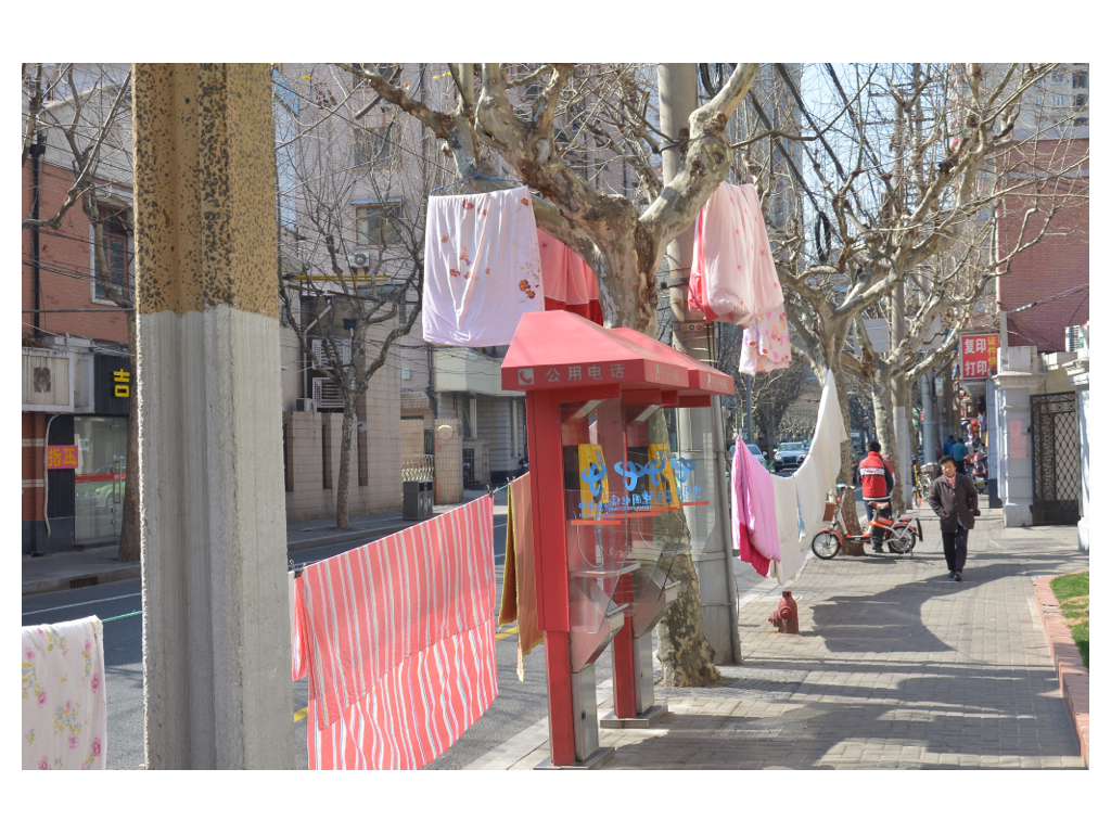 Samstags ist Waschtag, Bettwäsche trocknen an der Straße